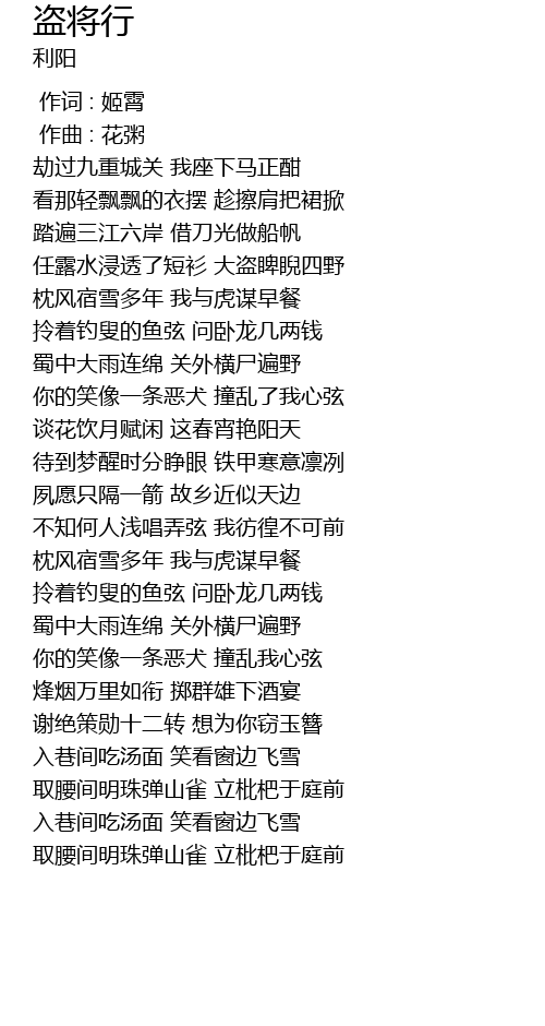 | [00:18.27] | 劫过九重城关 我座下马正酣 |