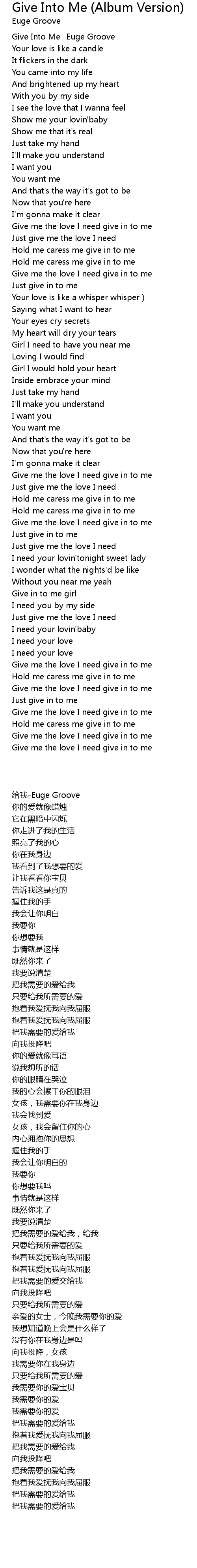 | [03:00.581] | I need your lovin' tonight sweet lady |