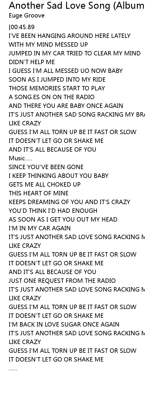 IT'S JUST ANOTHER SAD LOVE SONG RACKING MY BRAIN |