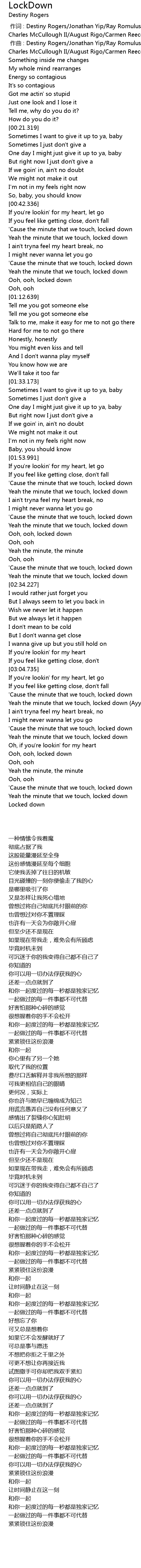 | [00:00.000] | 作词 : Destiny Rogers/Jonathan Yip/Ray Romulus/Jeremy Reeves/Ray Charles McCullough II/August Rigo/Carmen Reece |