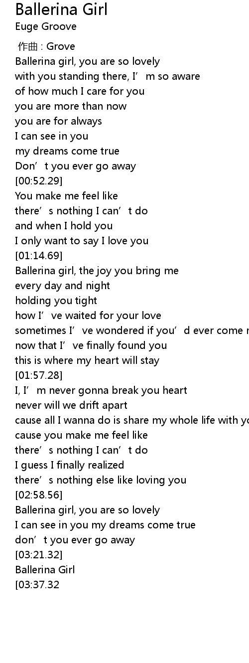 | [03:01.65] | Ballerina girl, you are so lovely |