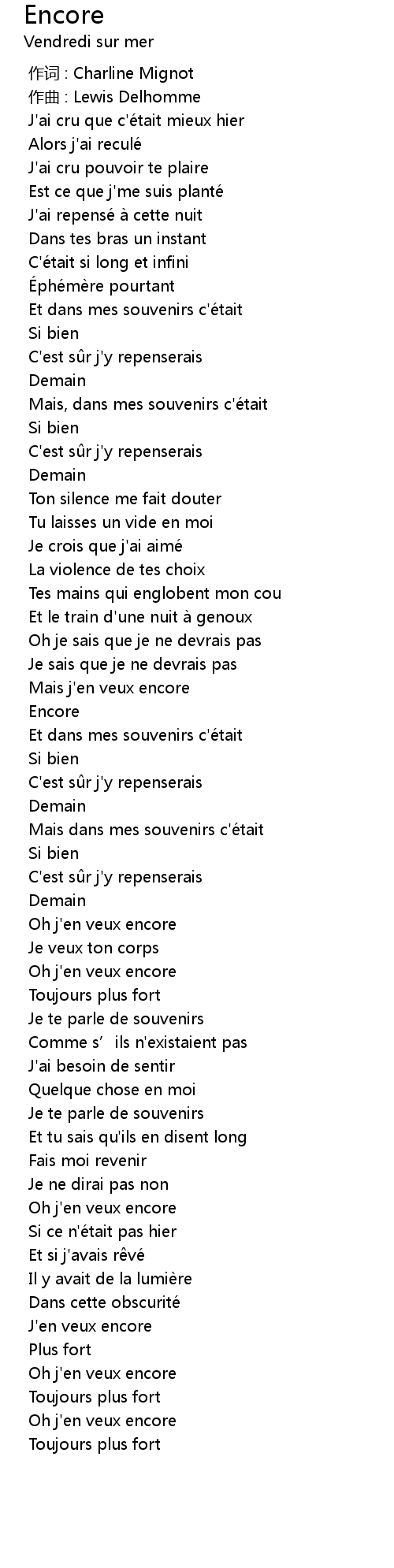 | [02:47.910] | J'en veux encore |