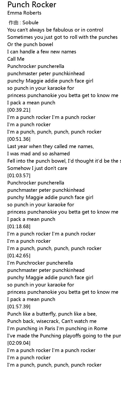 | [00:48.05] | I' m a punch, punch, punch, punch rocker |