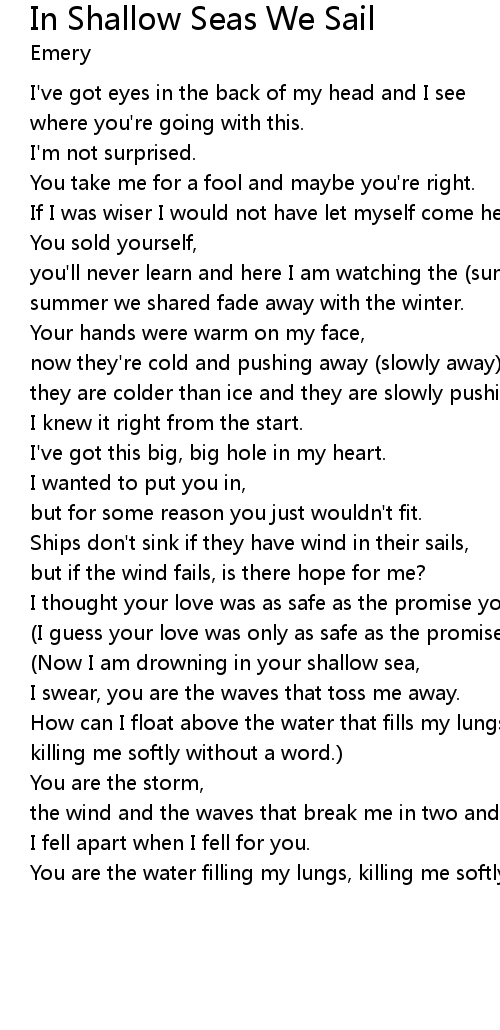 | (Now I am drowning in your shallow sea, | |