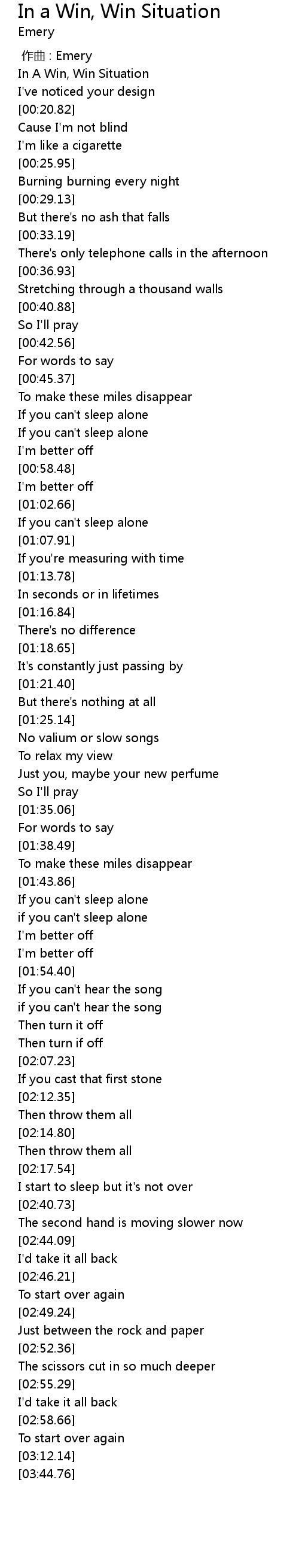 | [00:00.10] | In A Win, Win Situation |
