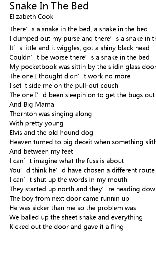 | There’s a snake in the bed, a snake in the bed | |