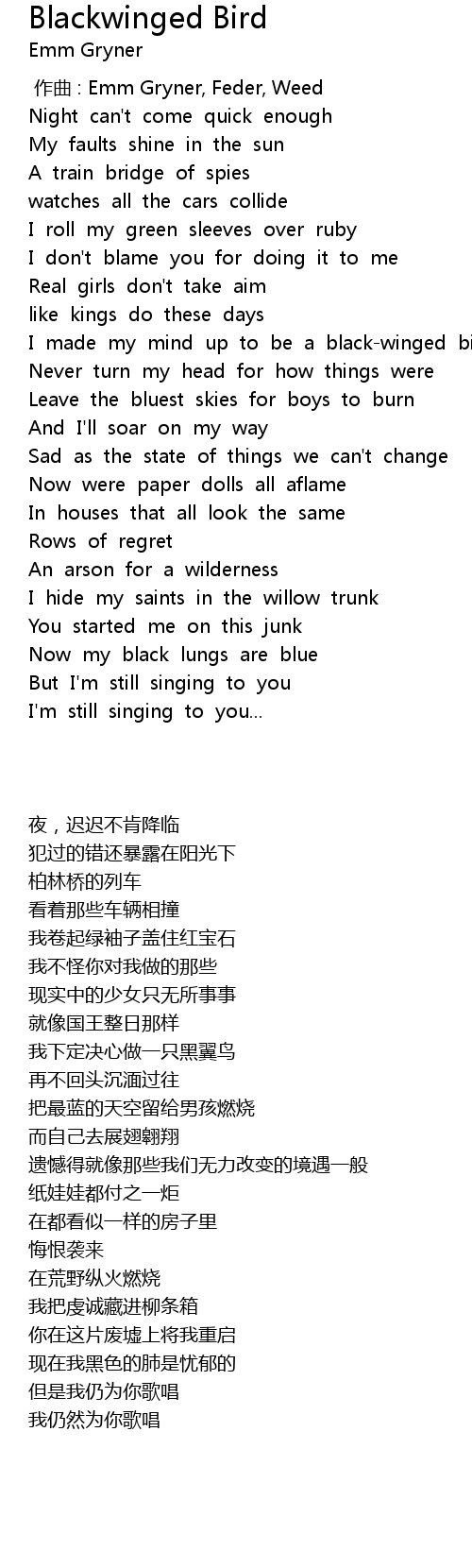 | [01:01.989] | I made my mind up to be a black-winged bird |