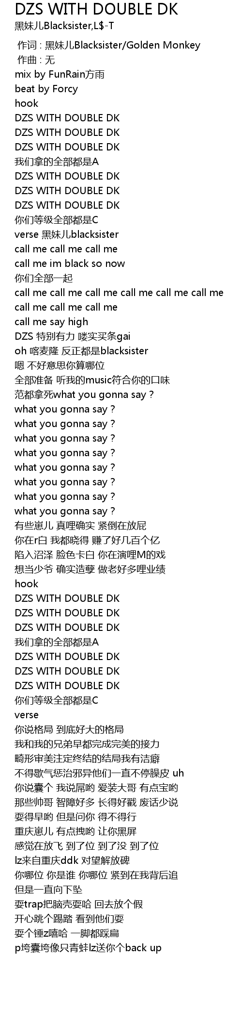 | [00:47.463] | fàn dōu ná sǐ what you gonna say? |