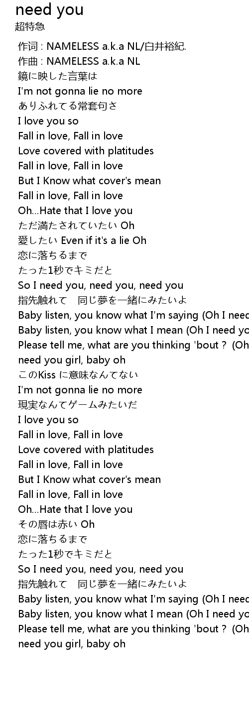 | [01:41.151] | Baby listen, you know what I mean Oh I need you girl |