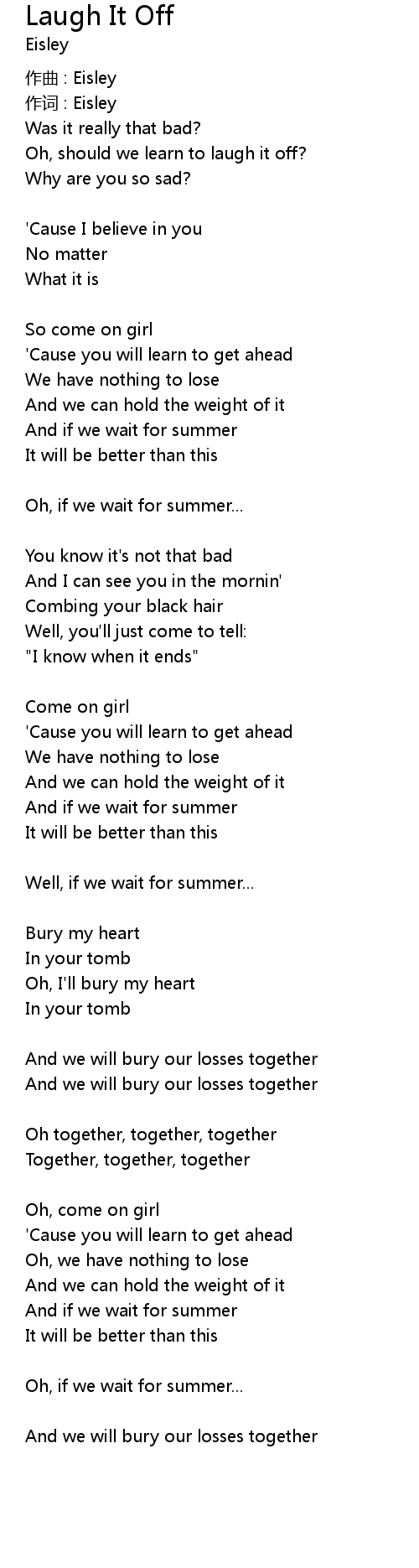 | Oh, should we learn to laugh it off? | |