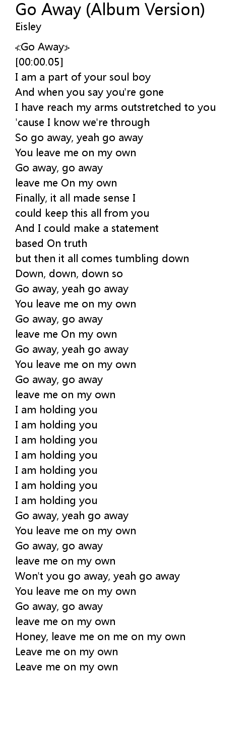 | [00:00.41] | So go away, yeah go away |