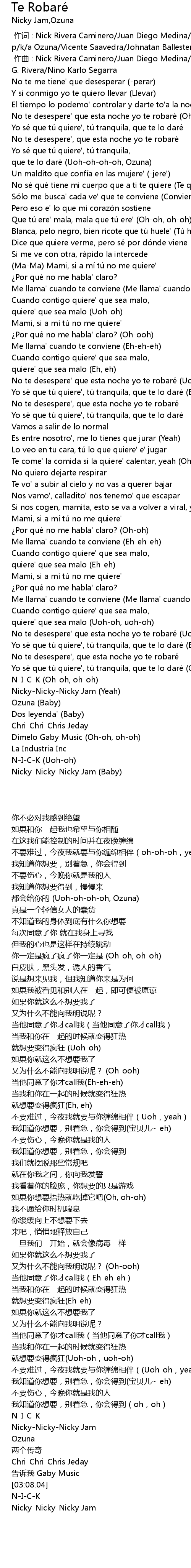 | [02:32.76] | No te desespere' que esta noche yo te robare Uohoh, yeah |