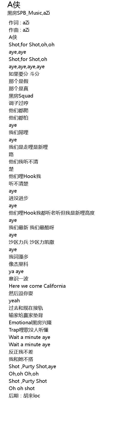 | [00:01.80] | A侠 |