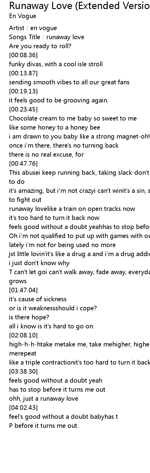 | [00:04.43] | Songs Title:runaway love |