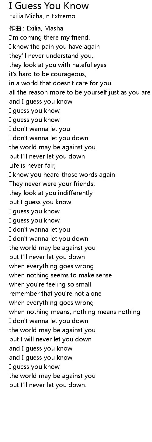 | I guess you know | |