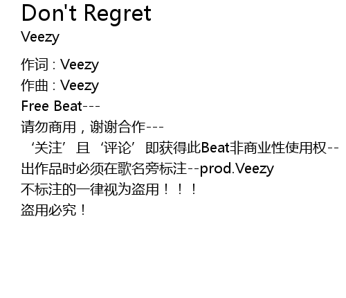 | 出作品时必须在歌名旁标注--prod.Veezy | |