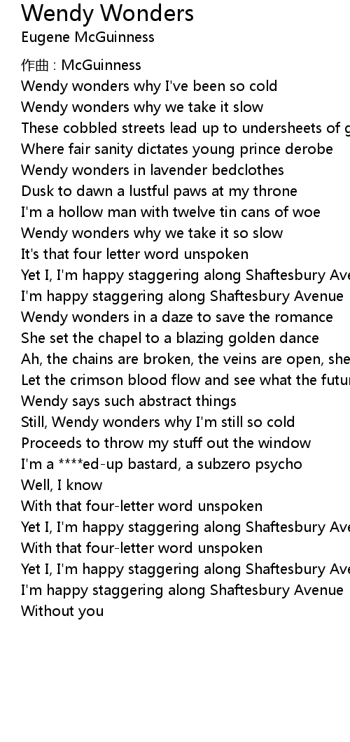 | Still, Wendy wonders why I' m still so cold | |