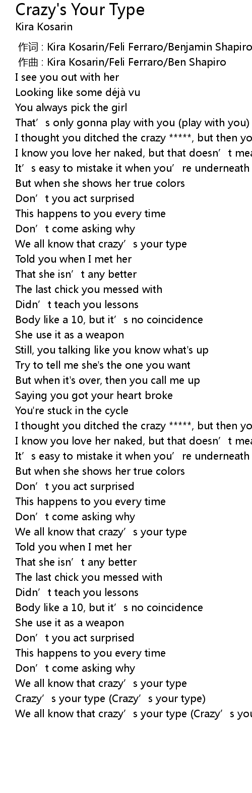 | [02:44.87] | We all know that crazy’s your type (Crazy’s your type) |
