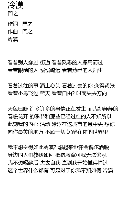 | 我不想变得如此冷漠? 想起来也许会偶尔洒脱 | |