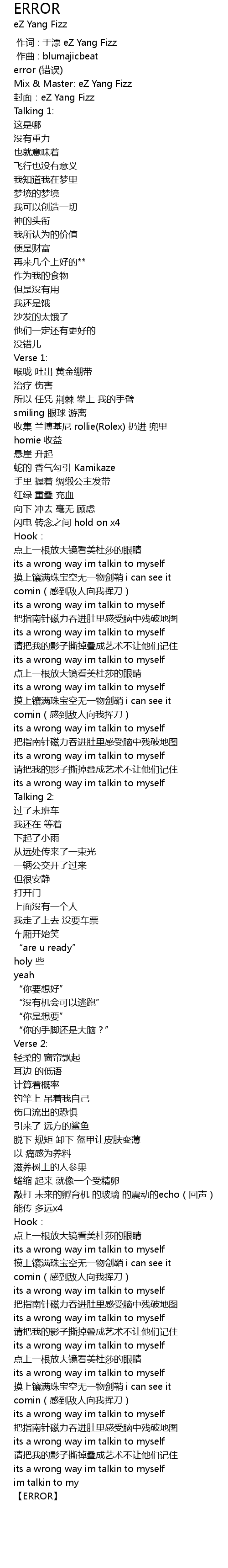 | [00:00.000] | 作词 : 于漂 eZ Yang Fizz |
