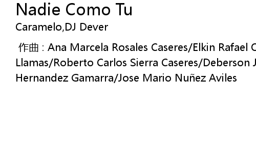 | [00:00.000] | 作曲 : Ana Marcela Rosales Caseres/Elkin Rafael Oviedo Llamas/Roberto Carlos Sierra Caseres/Deberson Jose Rios Caicedo/Fredy David Hernandez Gamarra/Jose Mario Nuñez Aviles |