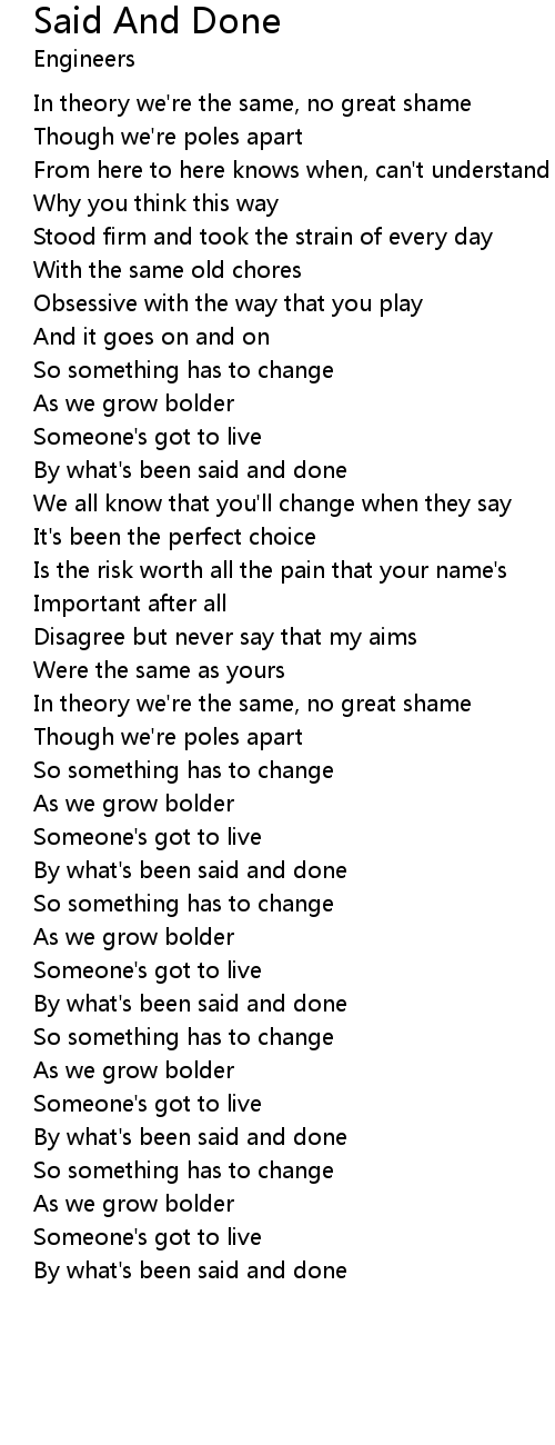 | By what's been said and done | |