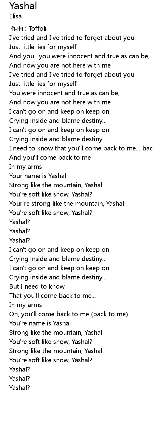 | [02:39.50] | Your're strong like the mountain, Yashal |