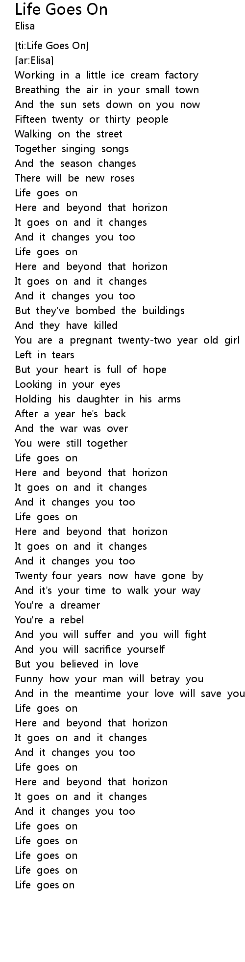| ti: Life Goes On | |