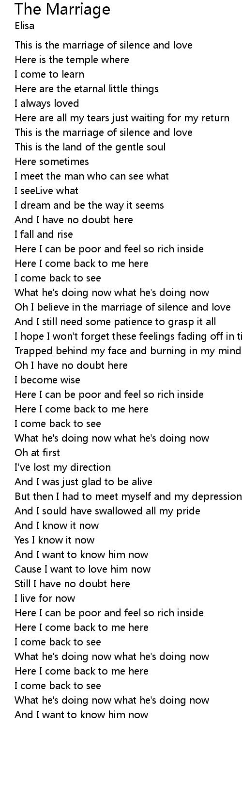 | Oh I believe in the marriage of silence and love | |