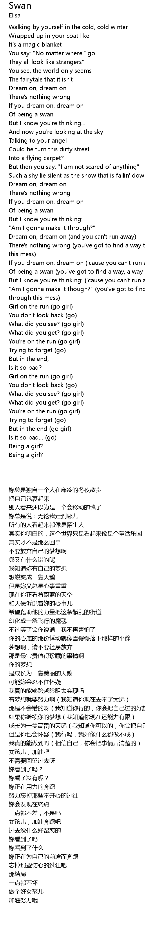 | [02:22.50] | Of being a swan |