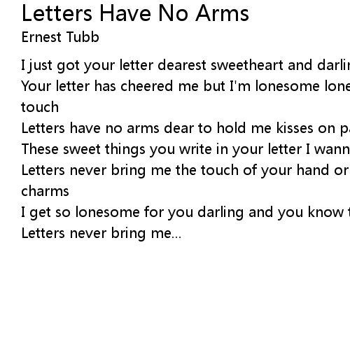 | I get so lonesome for you darling and you know that letters have no arms | |