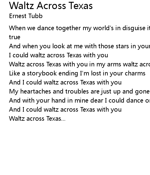 Waltz across Texas with you in my arms waltz across Texas with you |