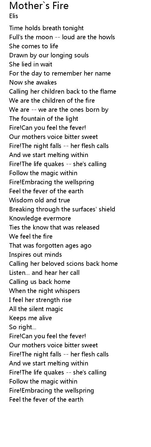 Mother`s Fire Lyrics
