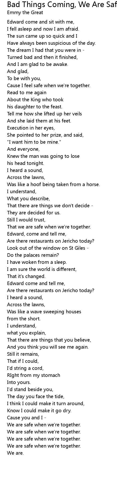 That we are safe when we're together. |