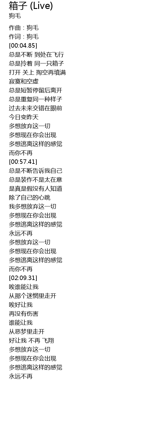 | [00:02.06] | 作曲:狗毛 |