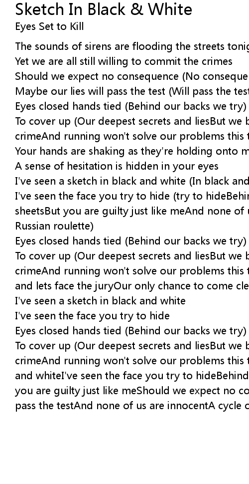 To cover up (Our deepest secrets and liesBut we both know we are suspects to the crimeAnd running won't solve our problems this time)(I've seen a sketch in black and whiteI've seen the face you try to hideBehind the doors under the sheetsBut you are guilty just like meShould we expect no consequenceMaybe our lies will pass the testAnd none of us are innocentA cycle of Russian roulette) |