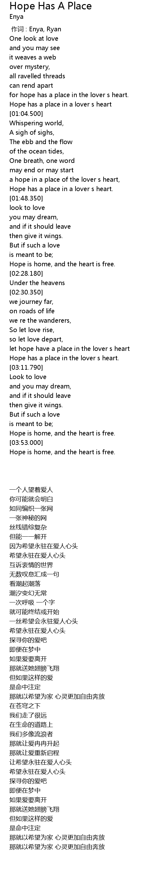 | [00:00.00] | 作词 : Enya, Ryan |