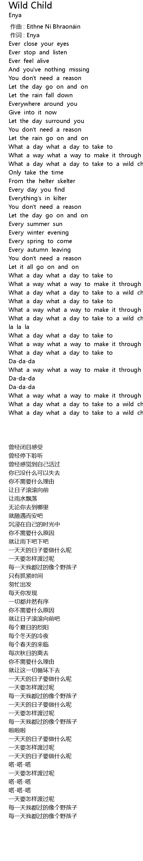 | [01:03.17] | What a day what a day to take to a wild child |