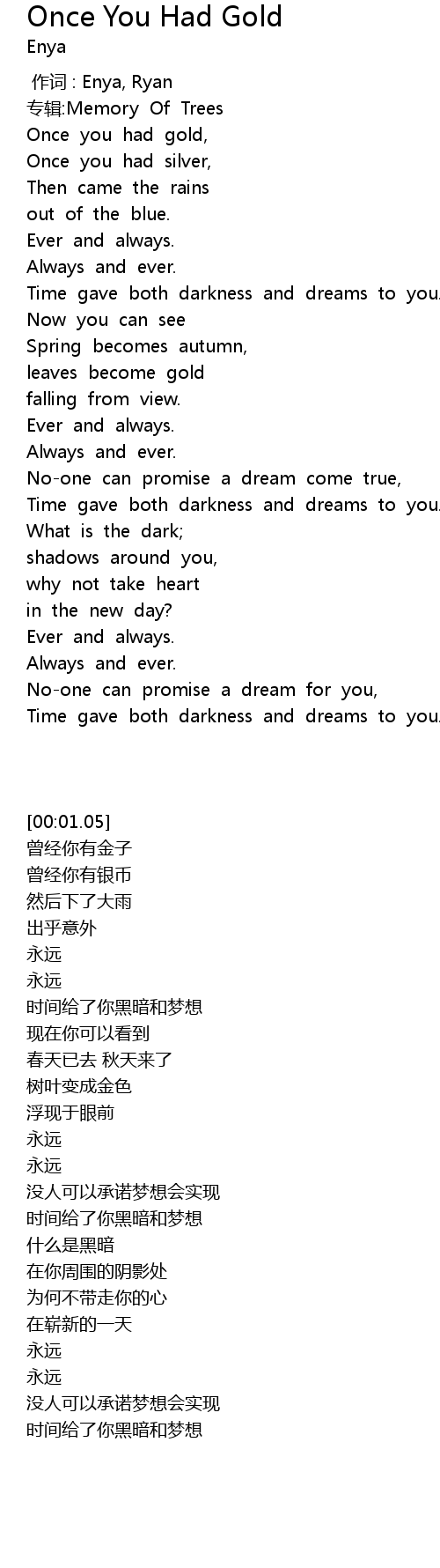 | [00:00.00] | 作词 : Enya, Ryan |