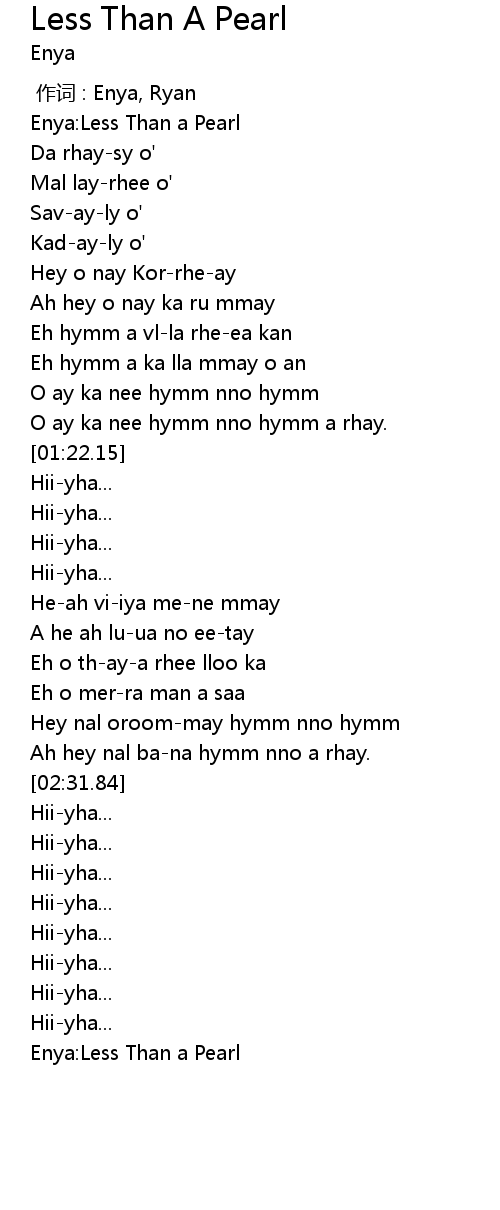 | [00:10.65] | Enya:Less Than a Pearl |
