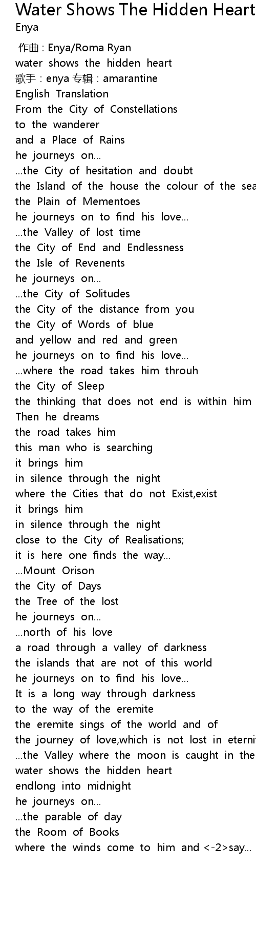 | [04:30.56] | water shows the hidden heart |