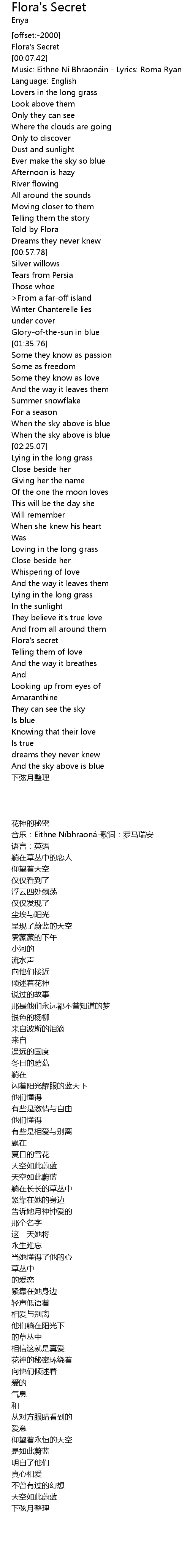 | [03:23.88] | Flora' s secret |