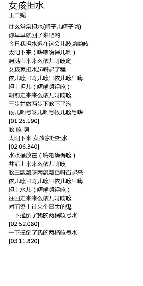 | [01:44.810] | 太阳下来 女孩家担担水 |