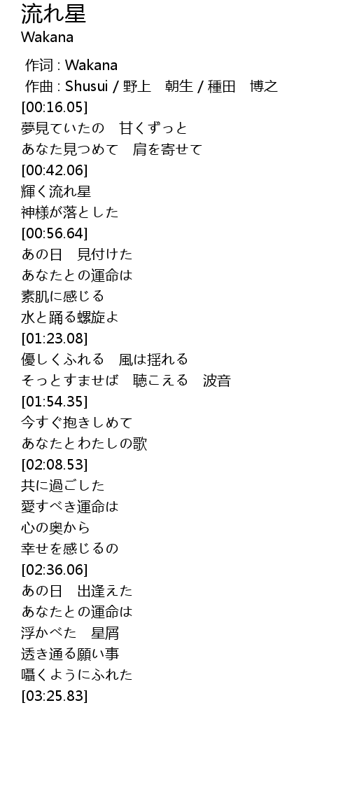 | [00:42.60] | 輝く流れ星 |