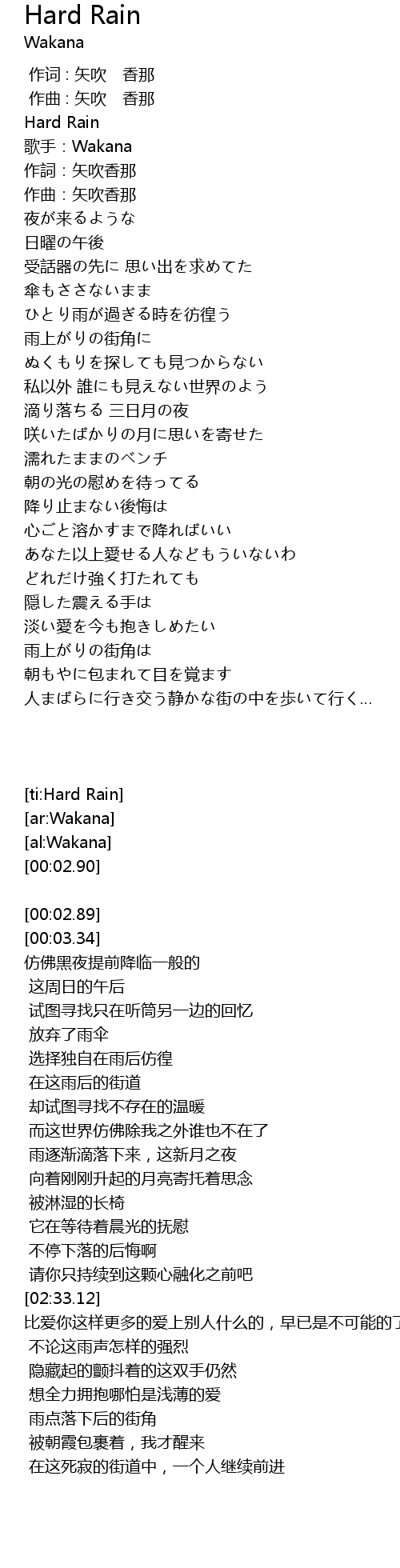 | [00:00.000] | 作词 : 矢吹 香那 |