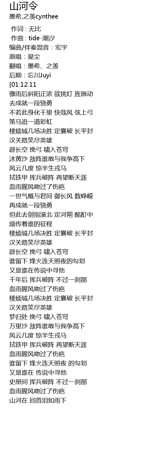 | [03:09.67] | 山河在 回首泪如雨下 |