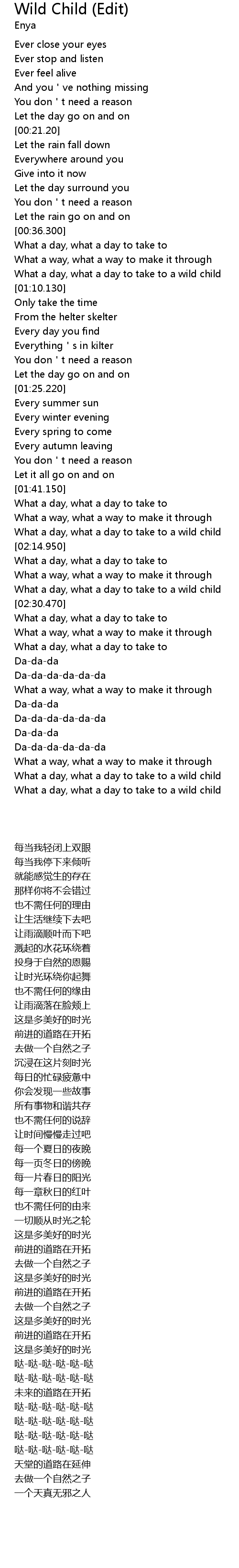 | [03:34.650] | What a day, what a day to take to a wild child |