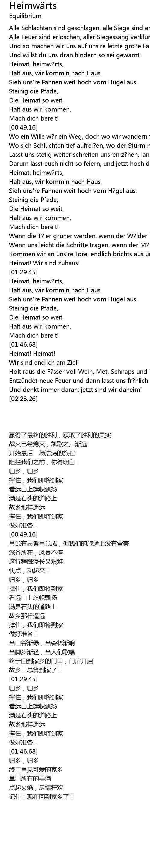 | [01:26.59] | Heimat! Wir sind zuhaus! |