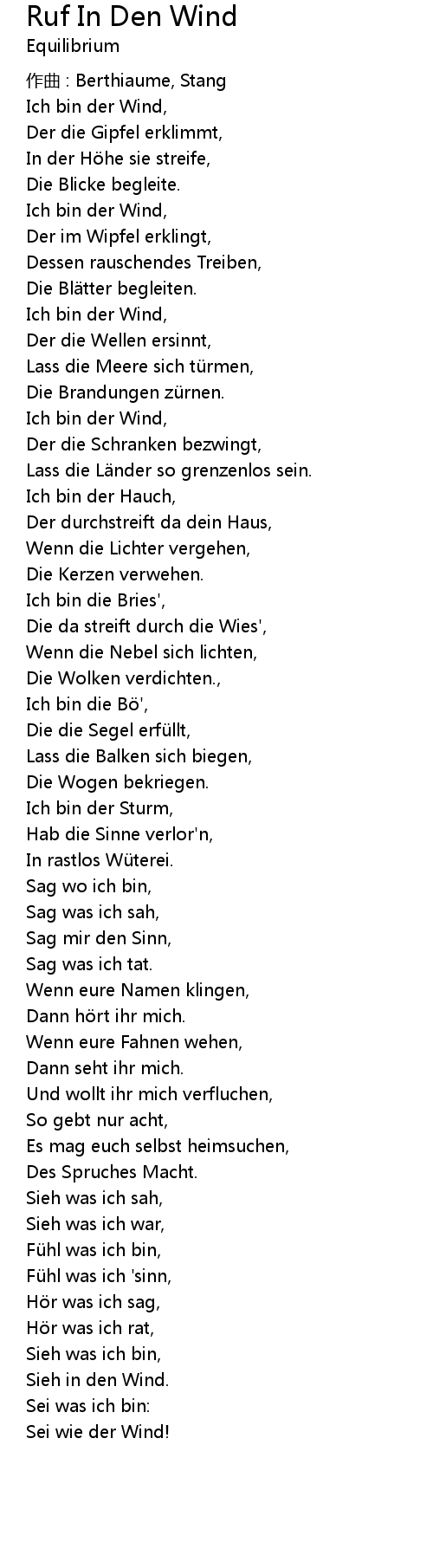 | Ich bin der Wind, | |