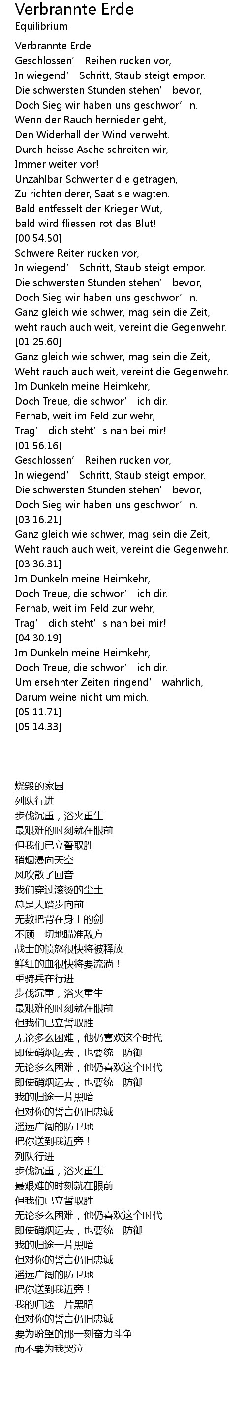 | [03:31.51] | Weht rauch auch weit, vereint die Gegenwehr. |